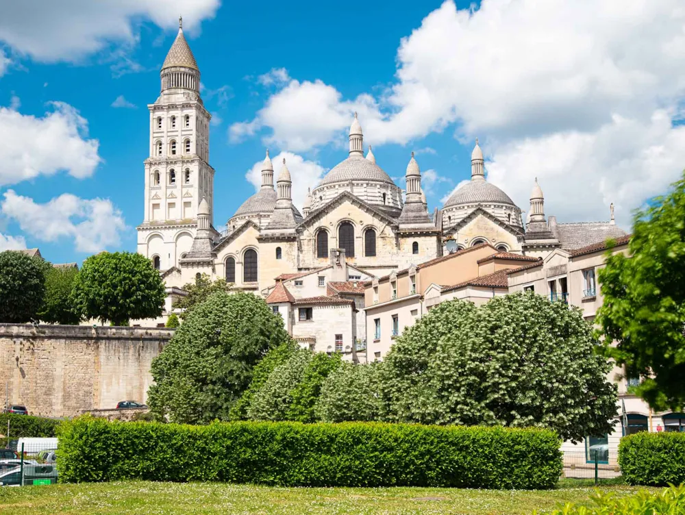 On découvre Périgueux et sa magnifique cathédrale Saint-Front en traversant la rivière l'Isle. C’est sur ses berges que se dresse ce superbe édifice de style Byzantin, inscrit au patrimoine mondial de l'humanité depuis 1998. C'est le joyau de la ville et un des symboles de la Dordogne. Cette cathédrale est une étape sur la route de Saint-Jacques-de-Compostelle. Lors de votre séjour en camping dans la vallée de l'Isle à proximité de Périgueux, vous pouvez visiter la cathédrale Saint-Front et découvrir ses très beaux vitraux. Toutefois, si vous en avez l'occasion, sautez sur l'opportunité de participer aux visites guidées sur les toits de la cathédrale. Une façon originale d'admirer les couples byzantines de la cathédrale et de profiter d'un superbe point de vue sur la ville. L'histoire de Périgueux remonte cependant bien avant la fondation de sa cathédrale. Le musée Vésunna raconte la vie de Périgueux à l'époque Gallo-Romaine. Autour de Périgueux vous attendent des campings 3 étoiles, 4 étoiles ou 5 étoiles avec des emplacements et des mobil-homes en location. Ils sont indépendants ou font partie d'un groupe tel que Capfun, Huttopia ou Sandaya. Certains vous offrent un cadre nature et paisible alors que d'autres disposent d'animations pour toute la famille et d'un parc aquatique avec une piscine chauffée et des toboggans aquatiques. Périgueux n'est toutefois pas le seul trésor de la vallée de l'Isle. Au gré de la rivière qui coule entre Périgord Vert et Périgord Blanc, s'égrènent de jolis villages et des sites surprenants comme le château de Jumilhac dont le propriétaire vous racontera l'histoire de son aïeul, un alchimiste en quête de la pierre philosophale. Le château des Bories, à Antonne et Trigonant, est, lui, un parfait exemple de l'évolution architecturale du Périgord avec un escalier Renaissance venu se greffer sur une bâtisse médiévale.